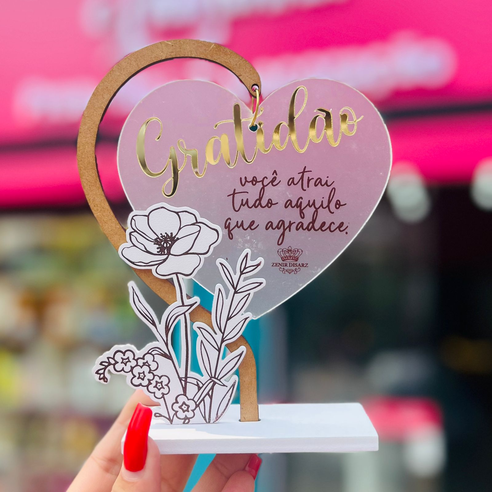 ENFEITE DE MESA COM CORAÇÃO ACRÍLICO GRATIDÃO ... AURORA 1 16X13