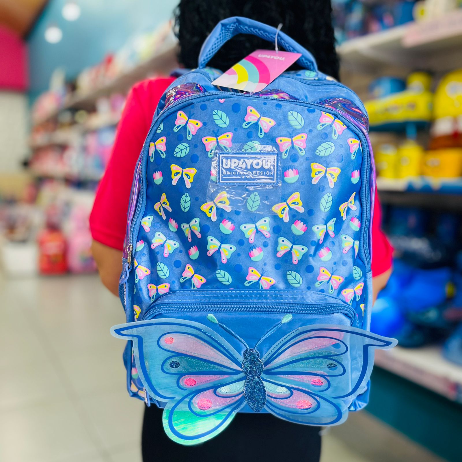 Kit Mochila 2Em1 Costas + Lancheira + Estojo Borboleta