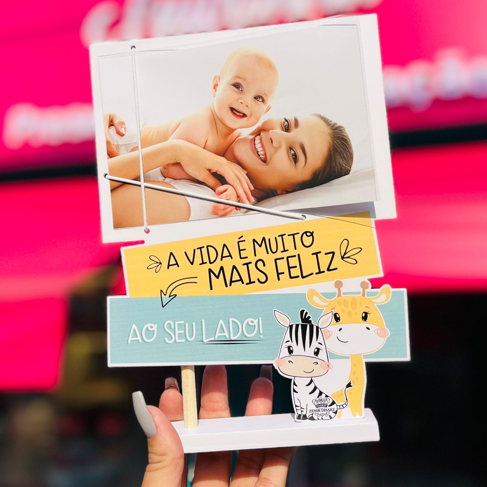 Material em MDF. com aplique MDF, com espaço para foto 15x10.